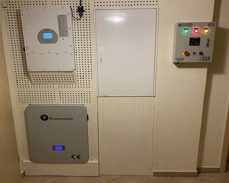 52KW solar panels, 30kwh lithium ion battery, 5 units 10kw hybrid inverter (3 phase 400v) in parallel connection